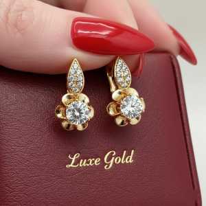 Серьги позолоченные Floria Luxe Gold с фианитами ⭐️ ❤️✨️ ☆гипоаллергенный ювелирный сплав (т. н.