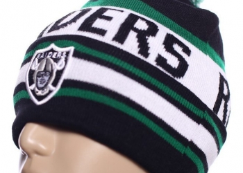 Шапка Raiders NFL зимняя с помпоном черная серая с вышивкой.