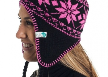 Шапка ушанка женская с орнаментом шерстяная черная-розовая с доставкой по России. На мягкой фланелевой подкладке.
