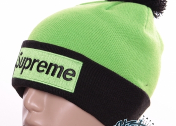 Шапка зимняя женская Supreme с помпоном и логотипом салатовая черная хип хоп с доставкой по России.