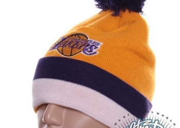 Шапка зимняя Lakers с помпоном баскетбол синяя желтая с доставкой по России.
