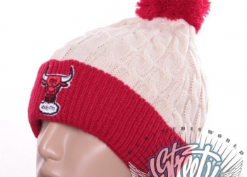 Шапка женская Chicago Bulls с помпоном белая красная, вязка косы, баскетбол с доставкой по России.