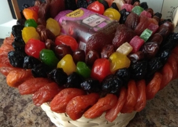 красивые и вкусные подарочные композиции в виде букетов, корзинок, с фруктами, сухофруктами, сладостями, медом, вареньем...