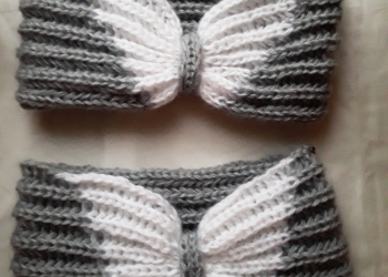 Комплект связан из пушистой акриловой пряжи бело-розового цвета. Мягкий, теплый, пушистый. Размер 56-58