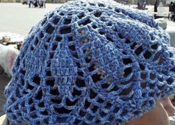 Берет связан крючком из 100 % хлопка. Будет прохладно в летнюю жару! Размер регулируется ввязанной тесьмой от 55-60 см.