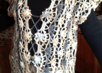 Жилет связан вручную крючком из секционной турецкой полушерстяной пряжи с мохером Alise.