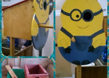 Скворечник с фигурным лицом из древесины. Покрыт двумя слоями краски.