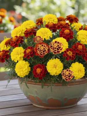 Маленький Герой- чудесная серия отлично выровненных бархатцев с махровыми цветками ярких окрасок.