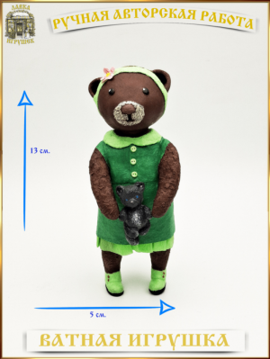 Ватная ёлочная игрушка "Мишка Тедди" высотой от 13 см. (девочка) до15 см. (мальчик), выполнена вручную.