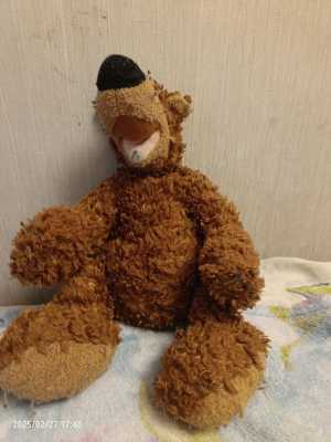 Мягкая игрушка, круглый медведь, светится в темноте, но ему надо заменить батарейки, подходит если ребенок, боится спать без...