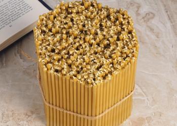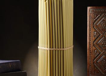 Иерусалимская свеча представляет собой 33 церковных свечи (число земных лет Иисуса Христа), собранные вместе.