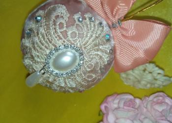 Бархатный шар с добавлением кружева, страз и брошей. Диаметр шара 7 см. Изготовление на заказ в течение 1-2 дней.
