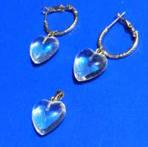 Серьги конго и подвеска сердце стекло под лунный камень опал