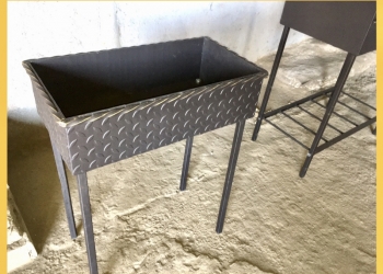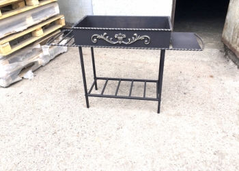 Мангал из листа 2 мм. Размер чаши 75*37*15 см. Размер с полками 135 см. Высота 80 см. Ножки съёмные.