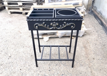 Очень удобный компактный мангал. Размер мангала 75*37*80 см. Толщина листа 3 мм. С печкой для казана от 6 литров.