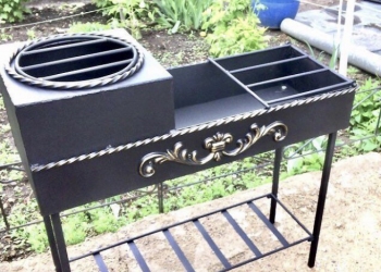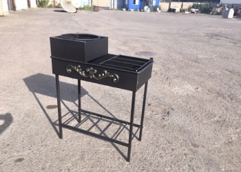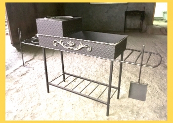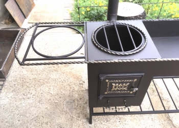Толщина листа 6 мм. С двумя хоз. полками. С полкой для дров. При желании укомплектуем кольцом для казана.