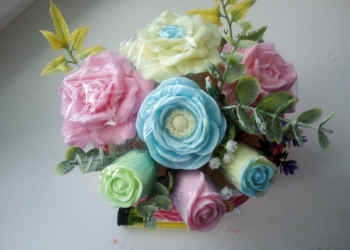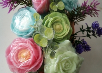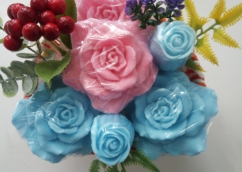 Цветы из мыла С добавлением кокосового масла ,отдушки розы,запакованы в пленку каждый цветочек