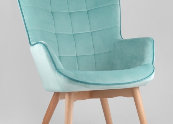 Широкое кресло с обивкой из вельвета и высокой спинкой.