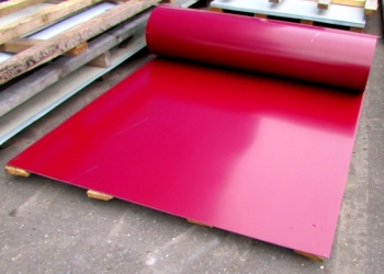 Гладкий лист в наличии на складе в Твери. Размер листа 2,0 м * 1,25 м, RAL3005, толщина 0,4 мм. в защитной пленке.
