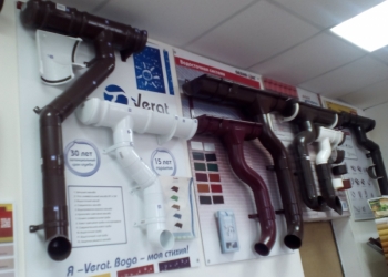 Элементы водосточной системы 9 видов разных производителей. Желоба и трубы, муфты, кронштейны, сливы и многое другое.