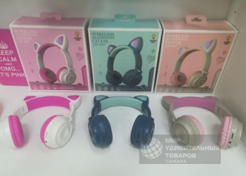 Блютуз-наушники с ушками. Артикул ZW-028. Беспроводные bluetooth наушники Cat Ear ZW-028 со светящимися кошачьми ушами серые.