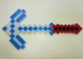 Молот Майнкрафт синий с красным, большой Молот Майнкрафт (MineCraft) красный с синим, длина 50см, светится и звуки из...