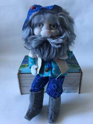 Кукла Дед Кузьмич с коробом- шкатулкой. Тканевая кукла, набивка синтепон. Размер 30 см.