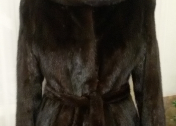 Норка горячий шоколад. Глубокий двусторонний капюшон. На поясе кулиска. Размер 46-48 Длина 90 см. Хорошее состояние.