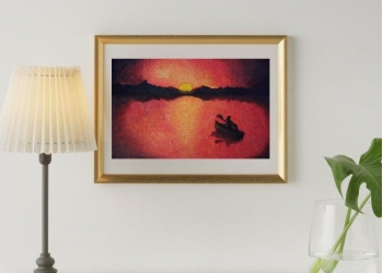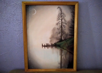 Продам картину "Рыбалка на закате". Холст грунтованный картон, размер 30*20 см. Масло. С рамкой.