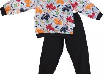 Пижама (кофточка и штанишки) из кулирки. Кофточкаи с принтом "Джипы", штанишки черные, однотонные.