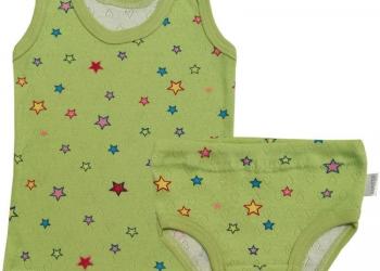Комплект для девочки (трусы и майка) из рибаны с рисунком "звезды на салатовом" х/б (ажур). Торговая марка Папитто