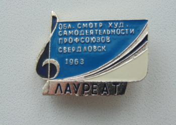Значок Областной смотр художественной самодеятельности профсоюзов Свердловск 1963. Лауреат