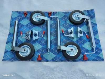 Продам новые подкатные (опорные) колеса для прицепа. Продаются в сборе с крепежным хомутом.
