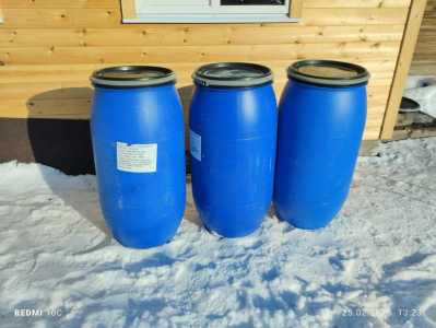 Продам пластиковые бочки, объем 170 литров, высота 96,5 сантиметров, внутренний диаметр горловины 39 сантиметров.