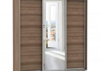 Шкаф-купе Медиум шириной 2100, имеет три двери: две двери выполнены из ЛДСП, третья зеркальная.
