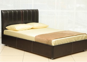 Внешний вид Элегантная кровать с изголовьем, украшенным декоративной строчкой. Материалы Модель изготовлена из ДСП.