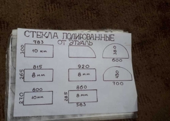 Продаются полированные стекла с кронштейнами, б/у. В наличии много. Самовывоз. База отдыха на оз. Сугояк. Цена за штуку.