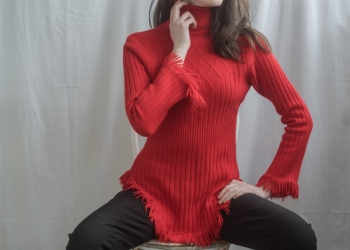 • Свитер женский с узором • Размер 40-42 • Цвет красный • Рукав чуть укорочен, передняя и задняя части изделия...