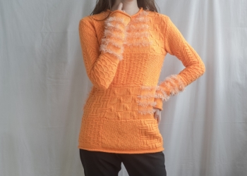 • Ручная работа • Джемпер женский с узорами, новый • Размер 42-44 • Цвет оранжевый • Рукав чуть удлинён, ворот...
