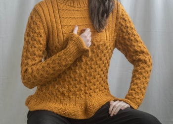 • Ручная работа • Свитер женский с узорами • Размер 44-46 • Цвет грязно-оранжевый • Рукав чуть удлинён...