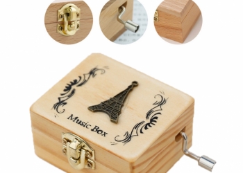 Выполнена из красного дерева с открывающейся крышкой и с металлическим ручным механизмом (ручку нужно крутить, чтобы мелодия...