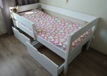 Кровать размером спального места 160×80 см. с бортиком и двумя выкатными вместительными ящиками.
