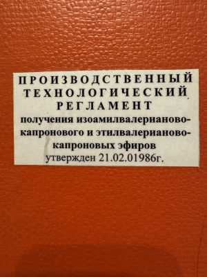 Производственный технологический регламент на получения изоамилвалериановокапронового и этилвалериановокапроновых эфиров.