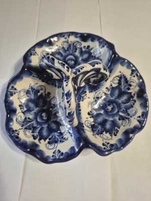 Икорница гжель, можно использовать как по назначению, так и для рыбных соусов. Ручная работа.