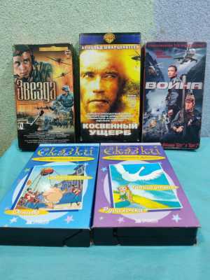 Видеокассеты в ассортименте, б/у, но их не смотрели. Цена указана за 1 ШТ.