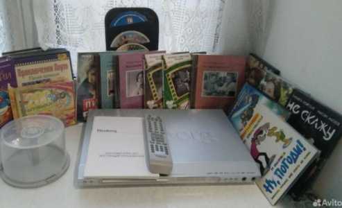 DVD плеер Elenberg б/у, рабочий, но давно не проверялся (нет проводов) + диски с мультфильмами и фильмами.