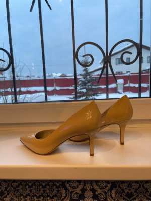 Очень нежные женские туфельки телесный цвет, натуральный лак, размер 39, для узкой ножки. Высота каблука 8 см.