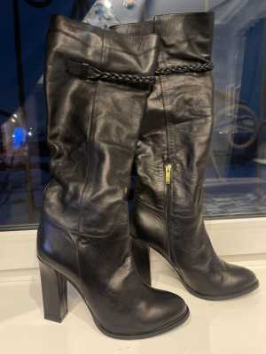 Красивые зимние сапожки! Высокие под колено. Натуральная кожа, цвет черный, размер 39. Высота каблука 10 см