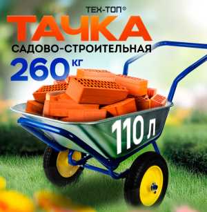 Тачка садово-строительная ТЕХ-ТОП 110 л предназначена для транспортировки различных грузов при хозяйственно-бытовых работах.