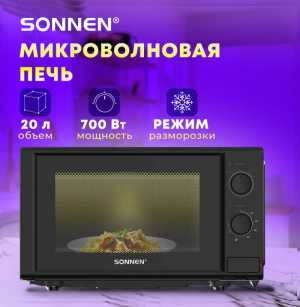 Микроволновая печь SONNEN MW2070BL-6MB, 20 л, 700 Вт, таймер, механическое управление, ручка, черная 6461 р.